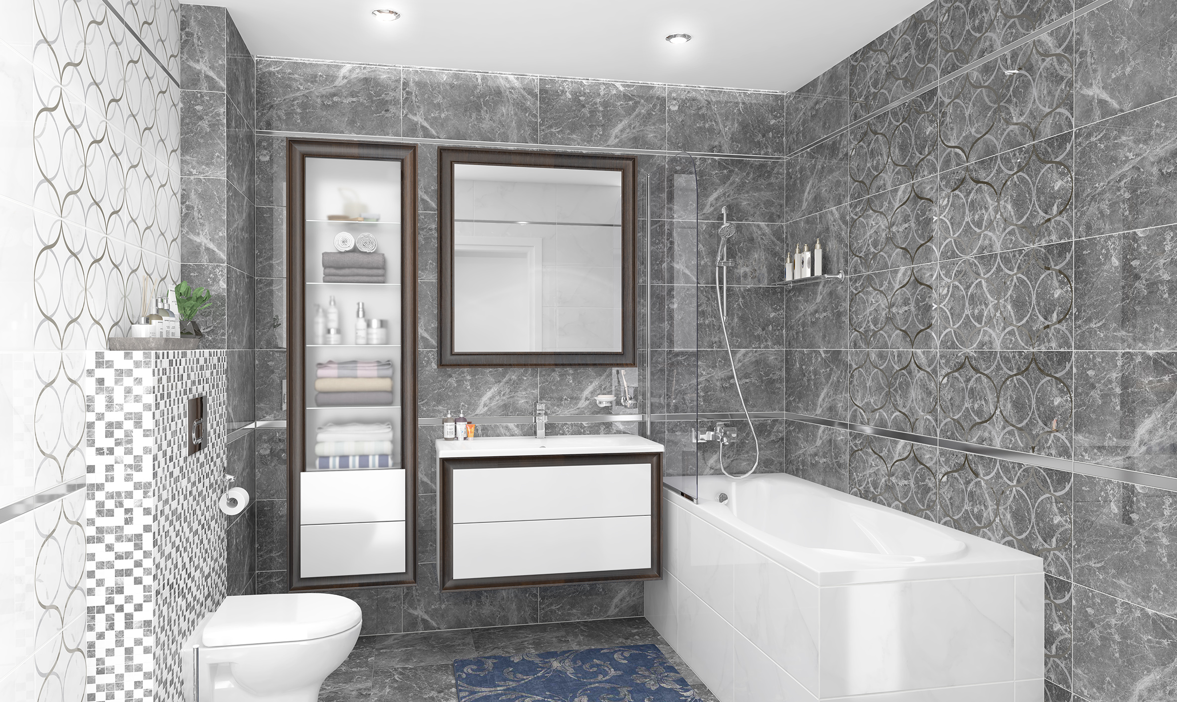 Мозаика Crystal серо-белая 30x30