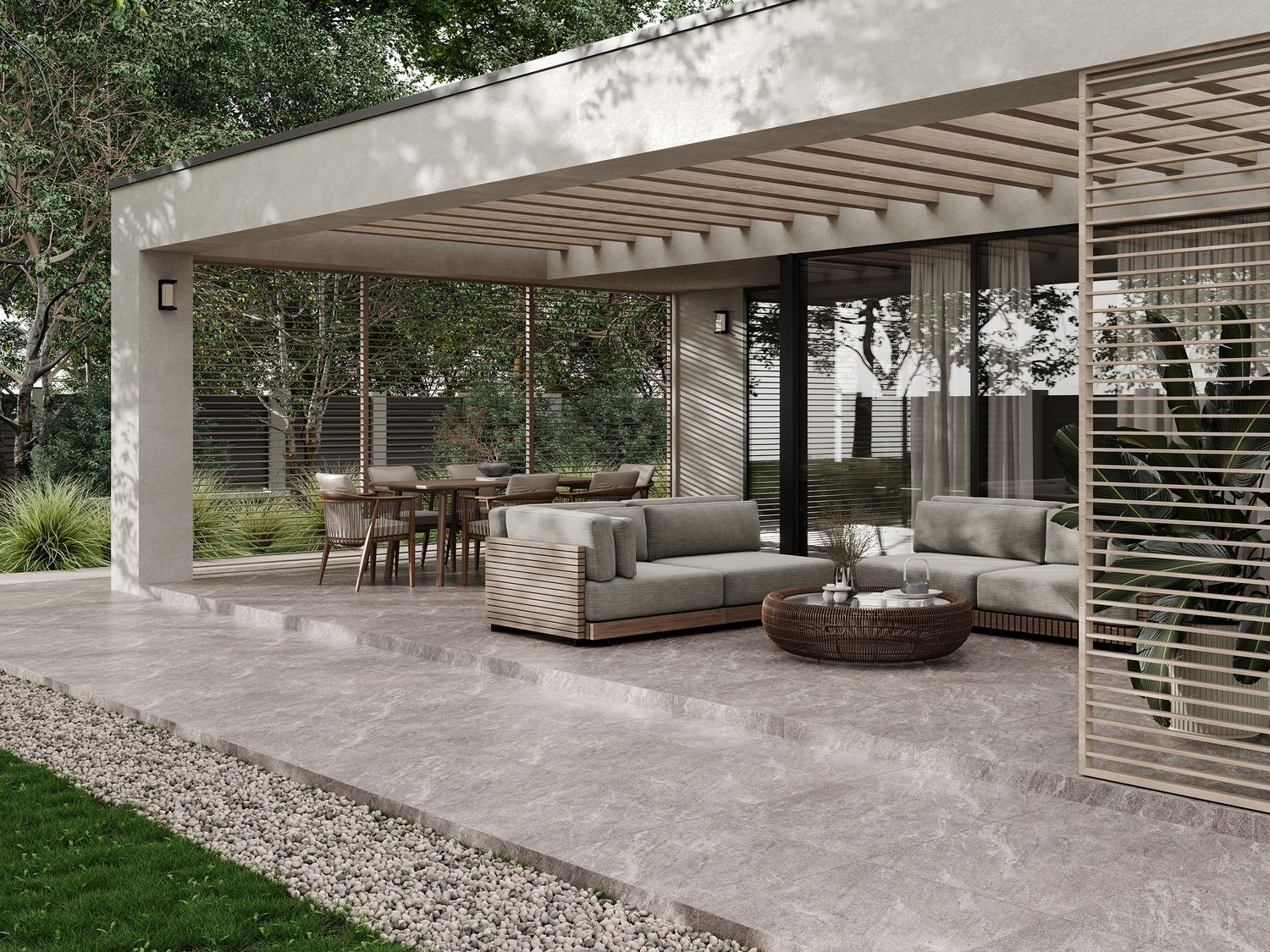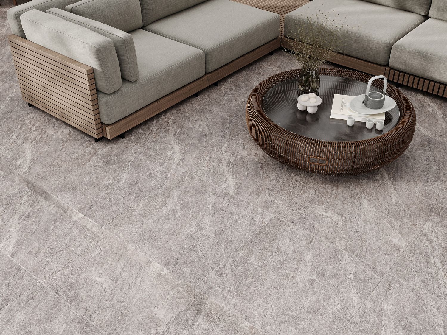 Коллекция Desert выделяется точной имитацией сланца, гранита и других пород камня. Поверхность плитки обладает матовым покрытием с натуральной текстурой, которая устойчива к скольжению. Размер 59,8x59,8 позволяет укладывать крупноформатную плитку с минимальными швами, создавая монолитный вид пола.